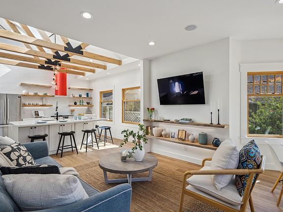 This beautifully restored 4-bedroom, 2.5-bathroom home combines the charm of its original architecture with modern luxury. Meticulously renovated, the property showcases soaring ceilings, open beam trusses, and expansive windows that flood the space with natural light. The open-concept living areas create an inviting atmosphere for both entertaining and everyday living, with high-end finishes throughout. The chefs kitchen is a highlight, featuring top-of-the-line appliances, quartz countertops, a large island with seating for six, and ample storage. The luxurious master suite offers a private retreat, complete with French doors out to the backyard deck, spa-like en-suite bath with dual rain shower heads, and a generous closet. With modern amenities like central heating, smart home technology, Bluetooth in-ceiling speakers, and energy-efficient windows, this home blends timeless beauty with the comfort and convenience of todays living. The gorgeous backyard offers a serene setting for relaxation or entertaining, with mature landscaping, a spacious deck and, and plenty of room for gardening or play.