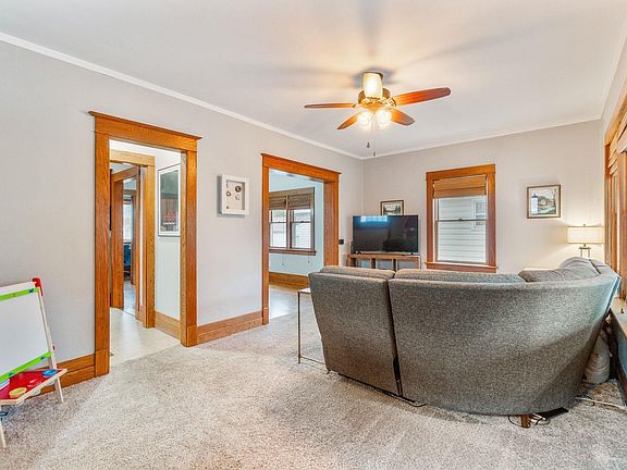 A tremendous offering! Situated in a great neighborhood and location, just minutes from Byrnes Park, this exceptional 2-story home provides great amenities, timeless elegance, and modern updating throughout. Leading you into the home is an amazing 144-square-foot three-season front porch with vaulted ceilings and window surrounds, giving you great views and a peaceful space to unwind or start your day. Stepping into the main floor of the home, you'll be sure to appreciate the classic woodwork, tall ceilings, and open feel throughout the entire main. The living room is spacious, bright, and flows seamlessly into the grand formal dining room with wood floors and plenty of room for large gatherings on any occasion. Just off the dining room is a fantastic kitchen, offering ample cabinet and counter space, updated appliances, and an exposed white brick chimney. The connectivity of the living space makes entertaining in this home easy! Finishing off the main floor is an office space with an attached half bath, as well as a convenient mud room/drop zone area with tremendous built-ins and back deck access. Head upstairs to discover two good-sized bedrooms, including the master, with a gorgeous tray ceiling, crown molding, and double closets with sliding barn doors. There is also an updated full bathroom upstairs to share. The lower level of this home provides even more great living space! Complete with a family room, a full kitchen with space for a dining table, a large third bedroom, and a 3/4 bathroom with connected laundry. Whether you're looking to have an in-law suite, a room to rent, or create a basement of your dreams, the versatility and possibilities downstairs are endless. The great amenities don't stop there! Step outside to find a huge deck, a fire pit area, a fenced-in yard, and you can't forget the oversized 702-square-foot garage! With its top-notch location and incredible features inside and out, this 2-story home is worth your time! Schedule your private showing today and see why 716 Campbell is the place to be!