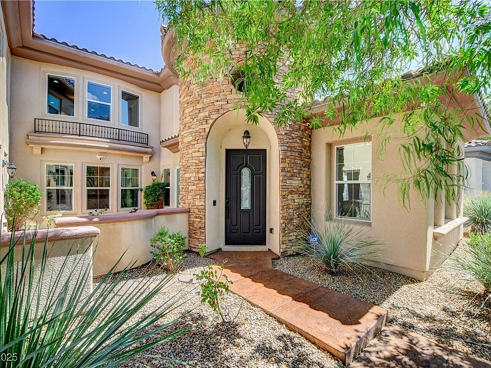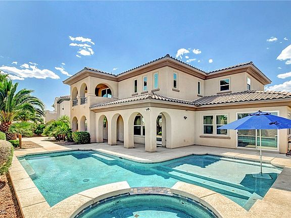 **CHECK OUT VIRTUAL TOUR** Experience luxury living in prestigious Paseos of Summerlin! 5-bedroom estate w/private casita blends timeless design and breathtaking views. Enter through the foyer into a formal living & dining areas, w/a versatile front room ideal for a den or library. A stylish wet bar connects the spaces, while the gourmet kitchen features a large island, stainless appliances, and custom cabinetry. The family room is filled w/natural light & anchored by a designer chandelier, and a flex room is perfect for a gym or game room. The primary suite offers dual vanities & water closets, custom closets, a walk-through shower, soaking tub & a private balcony w/panoramic mountain & Strip views. A downstairs en-suite bedroom & attached casita provide comfort for guests or multi-gen living, w/the front courtyard creating private access & additional outdoor space. Outside, enjoy the sparkling pool, spa, and expansive patio—ideal for entertaining under the desert sky.