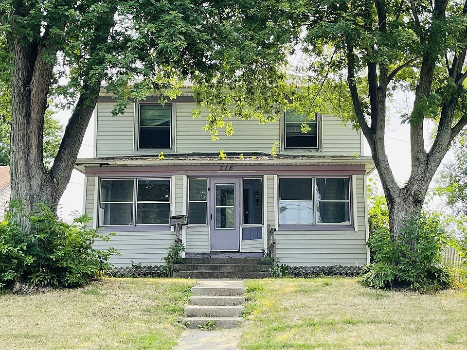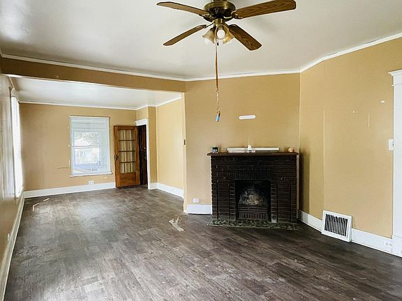 Spacious 2 Story Home - (5) Bedrooms, (2) Bath, Open Floor Plan, with Hardwood floors, fireplace, and built in original kitchen cabinetry -Enclosed Porch, Deck, and Detached (2) Car Garage. Yard offers plenty of space for outdoor living. Seller is selling "As Is".