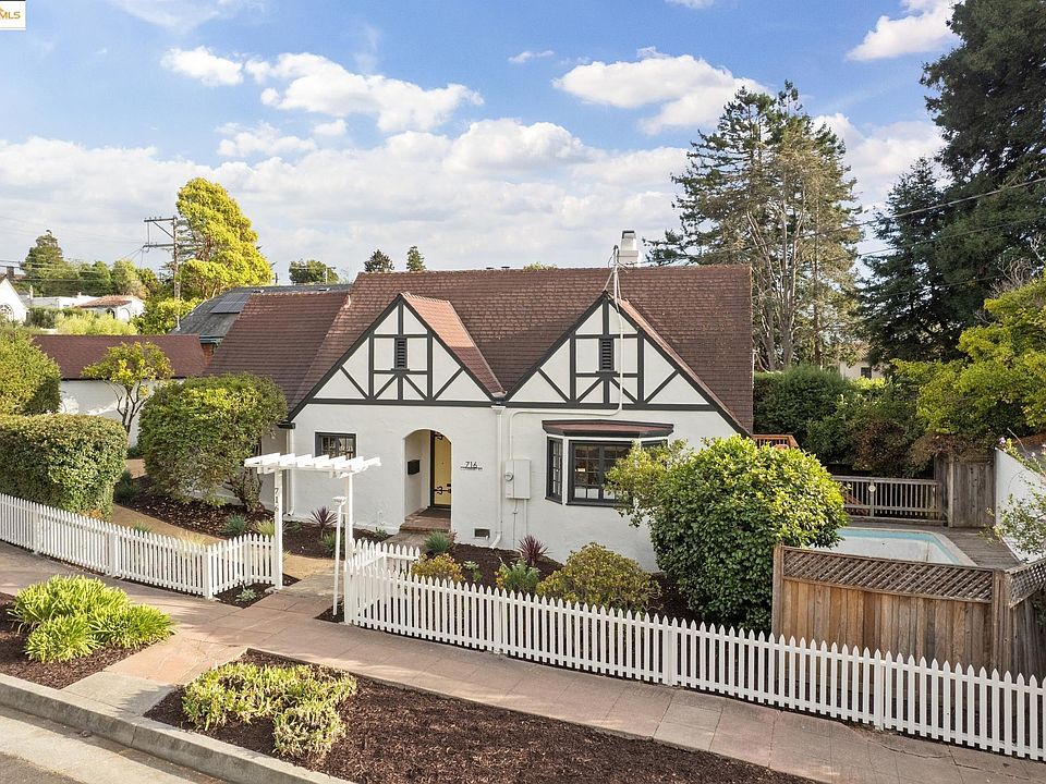 This picture-perfect Tudor cottage on a leafy Kensington street pairs storybook curb appeal with rare level-in convenience. A classic white picket fence frames half-timbered gables, an arched doorway, and a vintage front door, while fresh landscaping and a bay window brighten the façade and living spaces inside. The home blends timeless character with practical comfort: a refreshed kitchen with new cabinetry and mudroom, huge family and living rooms, multiple outdoor areas for entertaining, and even a “secret” office. The detached garage offers potential for an ADU, and upstairs the primary suite captures Bay and San Francisco views. Beloved by one family for decades, it’s ready for its next chapter. Beyond the doorstep, Kensington offers the charm of a hillside village with leafy paths and small-town calm. The Arlington shops, make everyday errands feel like part of the charm. Colusa Circle hosts cafés, grocers, pizza, and the Kensington Circus Pub, while Sundays sparkle with the Farmers’ Market, a festival of produce, flowers, and music. Nearby Blake Garden’s terraces and ponds, Kensington Park’s courts, playgrounds, and trails, make daily life both easy and inspiring. As for the pool? Sing it with me now… “Darling, you’ve got to let me know, should I stay or should I go"!