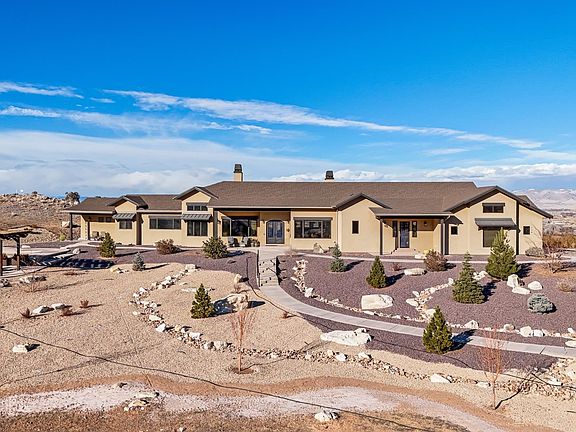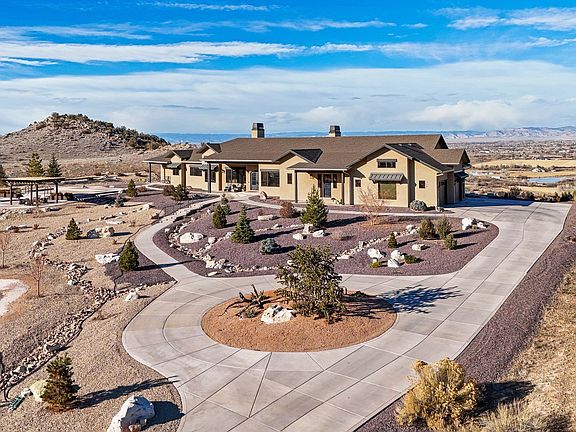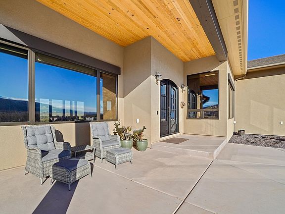 Discover the beauty and sophistication of this custom home, perfectly positioned on the hillside above the Colorado River, offering breathtaking views of private lakes and the stunning cityscape. The front yard is nestled at the base of the iconic Colorado National Monument, providing an unparalleled backdrop that enhances the home’s luxurious appeal. Spanning 3,836 square feet, this exquisite residence features two spacious living areas, three bedrooms—each with its own en-suite bathroom—an office, and a versatile flex space. The thoughtfully designed layout includes two LaCantina doors that seamlessly connect indoor and outdoor living spaces, allowing for effortless entertaining and enjoyment of the spectacular valley views from the covered patio. Step outside to relax or entertain around the in-ground chlorinated pool, complete with a wave machine, and enjoy the convenience of patios accessible from every bedroom. Set on 2.49 acres, this property offers a perfect blend of privacy and expansive views that make every moment truly special. Please note that the property has some builder defects and is priced to sell—offering an excellent opportunity for buyers looking to invest in a stunning location.