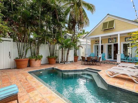 This magnificent TRANSIENT rental property is located in the heart of Key West's downtown historic neighborhood on world famous Duval Street. This single family home is known as Pilar's Secret and is a strong income producing property with a luxurious pool and wonderful outdoor space with multiple dining areas, lounging and sunbathing as well as a large outdoor shower and landscape lighting. Inside showcases beautifully decorated rooms with stunning Dade County Pine walls and ceilings, quartz countertops and a well appointed kitchen. There are two bedrooms on the first floor with a shared bath and the upstairs is the very private master suite with tons of storage, double sinks and a huge shower/spa experience.