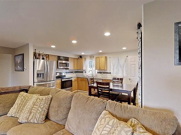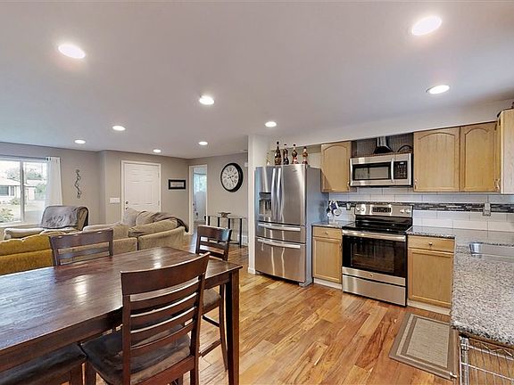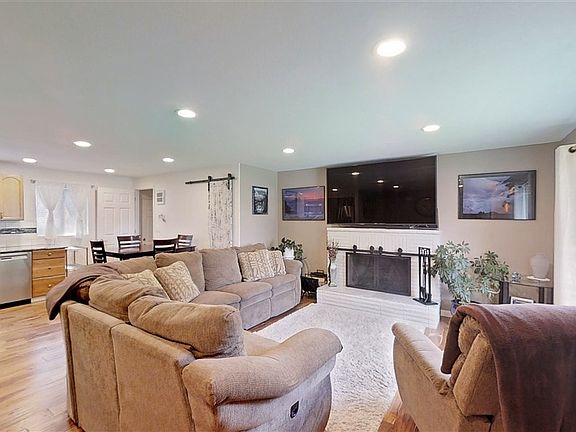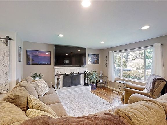 Beautifully updated rancher a Master suite on Main level featuring a huge walk in shower. Main floor also includes large 2nd bedroom. Gorgeous counters with engineered wood flooring throughout. Basement is mostly finished and features a RI 3rd bedroom, 2 egress windows and a large storage area with still enough room for your recreation or family living. Two drive ways; Rv parking, 2car garage features a large workshop, a wood stove, and automatic garage doors for both doors. Security cameras stay with home.