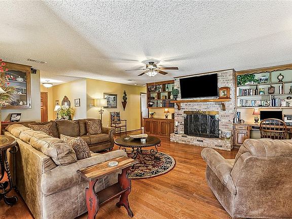 The living area is great for entertaining, with plenty of room for gatherings and a cozy fireplace to add extra warmth and charm. Step out into your own backyard oasis, where there's even more space to relax and have fun with friends and family.