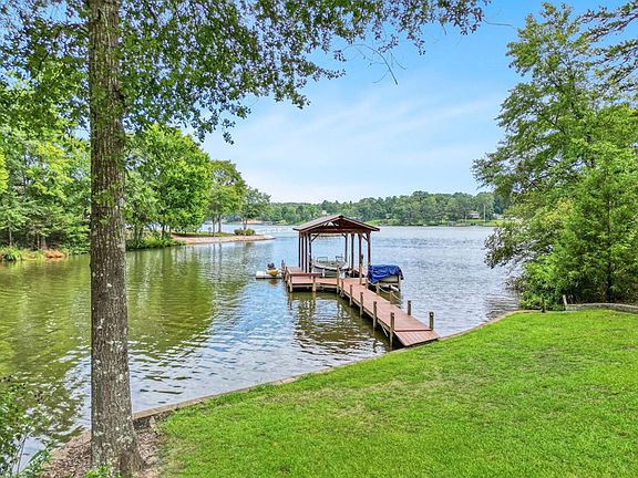 Love Your Lake Life! Meticulously maintained, beautifully landscaped, and super-energy-efficient Lakehome in the pretty Eagles Harbor gated lake community on 11,400-acre Lake Greenwood. Built with Hardi-plank and brick, the home has a “lifetime” architectural shingled roof and a no-maintenance ALL-PAID-FOR solar panel system that saves you hundreds of dollars every year. Sellers report electric bills as low as $12 a month from April-Oct! Cathedral ceilings on the main floor and 10' ceilings on the lower level make this 2- level home of 2042 sqft feel roomy and spacious. Enjoy an informal layout with casual dining looking out at the lake. Kitchen has cherry wood cabinetry, 24” tile flooring and a breakfast bar. All appliances convey, including the washer-dryer, and you'll appreciate the light bright Laundry Rm's utility sink and private outside exit. Nice that the Half Bath has a window and natural light! Like a warm fire in the winter? The LR's wood-burning, heat-circulating fireplace has glass doors and is stone clad to the ceiling with an attractive raised stone hearth big enough to sit close by the fire. Covered Deck off the Kitchen is “trex” type, has two fans and looks out over your lakeside greenspace to the sparkling lake waters. Charcoal grill stays so you can start grilling right away. Home offers up to 4 Bedrooms with the Primary Bedroom on the main floor offering a deep Walk-in Closet and a custom-tiled jetted tub/shower combo. Another room with Brazilian cherry flooring works as a bedroom or office on the main floor. A fully finished Walk-out Basement offers a Family Room with 24” tile, a lakeside bedroom with a slider door to the patio, and a back flex room ready for whatever you need- another bedroom, storage, workout area- both with handsome inlaid tile design work. The lower level also has your True Two-car Garage (22x28) with lots of storage cabinets and a built-in worktable. Lots of bells and whistles: a Solar Attic Fan keeps the house cooler from the top down. Two TVs stay. Canned inset ceiling lighting to spotlight artwork over the FP. “French-style” windows, doors and sliders. Upgraded vanities in all Baths. Convenient central vacuum system on main floor. New carpet in LR area (2023), new beveled glass front door (2023). New energy-efficient Heat Pump Water Heater (2023). New HVAC for the main floor (2023). Under Termite Bond. Per seller, an excellent well water system flows at 110 gallons per min. The engineered septic system was rebuilt in 2020, and is serviced annually, recently in June. Open parking and turn-around space on the concrete driveway near the Covered Front Porch. The Walk-out Basement leads to a 12x19 paved Lakeside Patio, a near- level green lawn gently sloped near the water (no flood insurance required) and an easy-care composite COVERED BOAT DOCK WITH BOAT LIFT. Your mini-cove location makes for a calm protected area. Floating ramp (used for a kayak), and the Dockbox for storage convey. Great landscaping! Lots of colorful trees, bushes and perennials adorn the greenery - rose of sharon, weeping cherry tree, Japanese maple, camelias, hydrangeas, even cold-hardy palms. Clean, well-fed Irrigation keeps it all healthy. Two lanterned brick pillars make an elegant statement at the driveway entry and property has two romantic lighted Arbors. Storage Shed (12x16) is handy for storing your garden tools. You'll appreciate the lake view every day, and the northeastern exposure facing the lake means you'll enjoy your outdoor spaces year-round. A perfect home for someone who doesn't want a huge house but wants all the benefits of lakefront living in a welcoming, gated community. (And don't forget the low electric bills.) LOVE YOUR LAKE LIFE!
