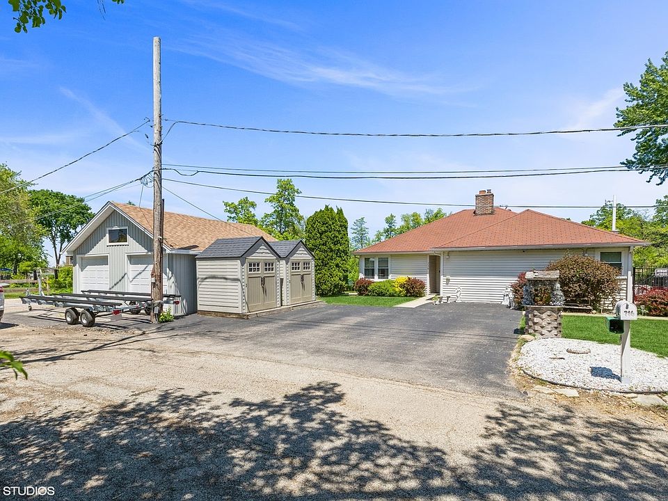 A must see very well maintained home! This home is located on a quiet dead end street on channel with boat dock , a lift, and lake rights/ no association. Enter into a bright sun lit living room with hardwood flooring, crown molding, and a wood burning fireplace. A nice sized master bedroom with laminate flooring. Second bedroom also features laminate flooring. Kitchen is open to dining room. Enjoy your morning coffee in a warm 12 x 11 sun room with heated flooring. Off of the kitchen step into a 11x11 office / 3rd bedroom. Separate laundry room with newer washer and dryer. New water softener. 2015 HVAC system. 2020 water tank. brand new storm doors. 2018 composite decking. newer windows. 3 wall mounted TV's included. Home also incudes security alarm systems with cameras. 2 nice sized sheds. Near Squaw Bar, Dog & Suds, walk to Metra Ingleside station to Union. On Manitou Creek.