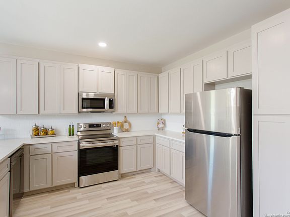 Welcome to 716 E Golf Course Dr in Spring Branch! This remarkable semi-custom home sits on a spacious quarter-acre lot with no HOA, offering the freedom to enjoy your property! With 1,568 square feet, this home features 3 bedrooms, 2 full bathrooms, and 1 half bath, thoughtfully designed with beautiful finishes throughout. Inside, you'll find upgraded laminate flooring in every room-no carpet! 10-foot ceilings and ceiling fans in every room create a bright and comfortable living space. The kitchen and all bathrooms are finished with elegant quartz countertops, and the primary suite includes a luxurious walk-in shower with a frameless glass door and stunning custom tile work. The kitchen is equipped with stainless steel appliances, and the refrigerator, washer, and dryer will stay with the home-making this a truly move-in-ready opportunity. Built just a few years ago, this home blends modern design with functionality in a peaceful, established area of Spring Branch. Don't miss your chance to own this beautiful property with both style and space-schedule your showing today!