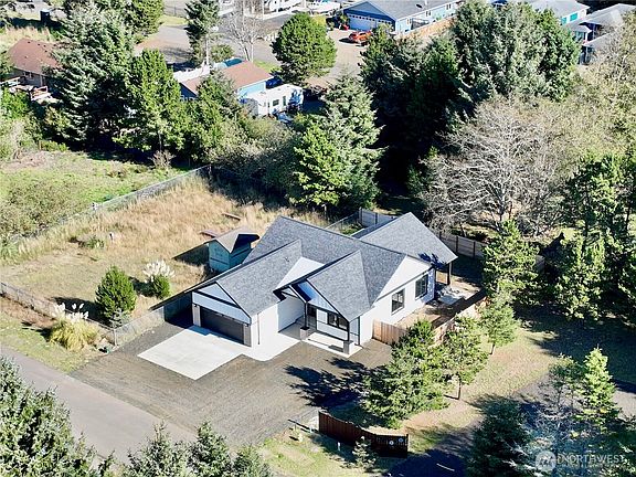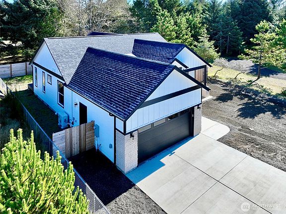 Island living at the beach! New Chic Sanctuary off the Beaten Path at Ocean Shores. Fab location surrounded by trees and waterways, yet just a few minutes to all amenities on the peninsula. This 1,491 sf plan features 3 bedrooms, 2 bathrooms and a 2-car garage. Fully fenced back yard w/gates on both sides. Enter into the sun-drenched great room with stunning floor-to-ceiling slab stone fireplace surround. Quartz waterfall kitchen island. Dining area w/door to the full-length back deck. Primary en-suite w/4-piece bathroom and walk-in closet. 2 more bedrooms and a full bathroom complete the plan. LG appliance package including W/D. Forced air heat/cool furnace system. RV parking & 30amp plug in. Plumbed for EV plug in. Full-size 7,577 sf lot