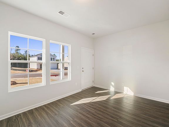 This two-story home includes 4 bedrooms and 2.5 bathrooms, with a Two-car garage which leads to the kitchen. The kitchen has a large island and tons of storage plus a walk in pantry. The cabinets are Shaker Style Ashen and the granite is a beautiful Dallas White. Luxury Vinyl flooring in Cinnamon Walnut runs through out the first floor. You will enjoy the large eat-in area, which also connects to the family room. Near the front door is a Flex Space. Upstairs, the primary bedroom leads to a primary bathroom with two linen closets, access to a large walk-in clothes closet, with a garden tub and separate shower with tile walls. The laundry room is conveniently located just outside the primary bedroom, close to the three spare bedrooms and their full bathroom.
