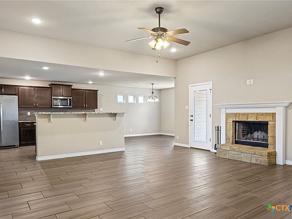 LOCATION! LOCATION! LOCATION! For house hunters looking for a beautiful 4/2 that is just minutes away from Scott & White, local shopping, & I-35, this is the one! Located in the Canyon Ridge subdivision, this approx. 1,853 sqft home welcomes with an attractive stone/brick exterior, landscaping, & covered front porch. Once inside, new owners will love the open floor plan that features an elevated ceiling, recessed lighting, & a neutral color palette that ties in beautifully with the wood burning fireplace and tiled floor. The kitchen boasts of stainless appliances, granite countertops, & plenty of room for both cooks & taste testers alike! This area easily transitions into a sizable dining space with backyard views and patio access. This split bedroom plan allows for a generous master bedroom that opens into a double vanity bath with soaking tub and separate
