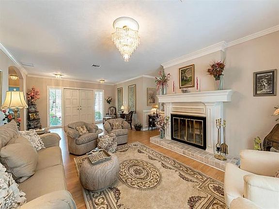 Comfortable and spacious three bedroom plus den, three and a half bath, pool home on a quite cul-de-sac in the heart of Pelican Bay. Enter through double doors into an elegant living room which shares a double sided fireplace with the family room. Kitchen offers granite counter tops and features double wall ovens and a large island - plenty of custom cabinetry for ample storage. Private formal dining room. Oversized master bedroom with adjoined office overlooking the pool. Crown modeling throughout. Two skylights in the home flood natural light into the kitchen and master bath. Large private backyard with a serenity pond. Metal roof with transferable lifetime warranty. Don't miss the opportunity for potential renovation or to build a new home in the coveted Pelican Bay Woods. 3 miles of beach, 2 beach clubs, 4 restaurants, 27 holes of golf, tennis, kayaking and fitness center. Walk to Beaches, Waterside, Artis-Naples
