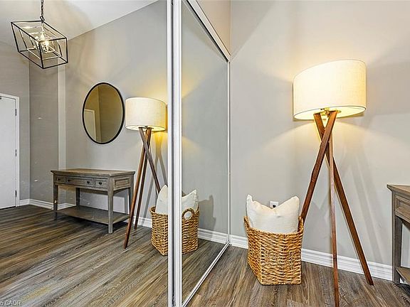 Welcome to this stunning penthouse suite where luxury, light, and lifestyle come together. This sun-filled 2-bedroom, 2-bathroom condo features 960 square feet of beautifully finished living space, soaring 10-ft ceilings, remote Hunter Douglas blinds, and a spacious entryway that sets the tone the moment you walk in. Take in unobstructed escarpment and sunset views from the open-concept living and dining area, perfect for relaxing or entertaining. The large primary bedroom offers a generous closet and a stylish ensuite with a glass shower, while the second bedroom is equally spacious and ideal for guests, a home office, or family. A modern 3-piece bathroom and ample in-suite storage round out the thoughtful layout. Residents enjoy top-tier building amenities, including a rooftop deck, guest suites, party room, exercise room, and visitor parking. With its convenient location you’re just steps from shops, dining, parks, and the Milton GO Station making commuting effortless. A rare penthouse offering the perfect blend of comfort, style, and convenience.