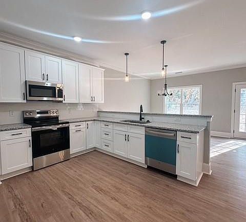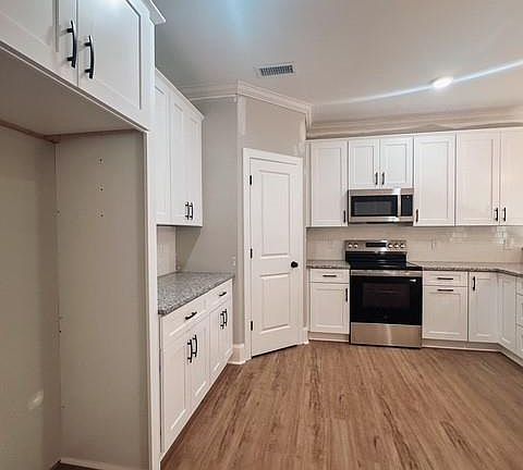 CUSTOM BUILDER TOUCHES EVIDENT THROUGHOUT! Beautiful wooded lot with easy access to shopping, dining, golf course, and hospital. Oversized crown molding, casing and baseboards with Luxury Vinyl Plank in common areas. Primary suite has walk in closet with ample shelving. Full tiled shower in primary bath, linen closet and upgraded shower door. Granite tops in all baths and kitchen. Gorgeous subway backsplash in kitchen and bar top. Open floor plan with large great room and dining area. Full sized laundry room. Walk in attic with large storage space. Finished garage with garage door & opener. Seamless guttering, Custom cedar posts and shutters are quite charming. Special financing packages available to qualified buyers!!