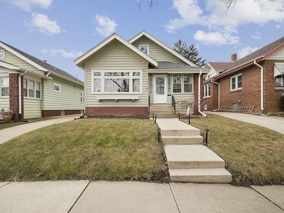 Charming West Racine bungalow, 3 main-floor bedrooms + expandable attic. Cove ceilings, natural woodwork, & hardwood floors create timeless appeal. Newer windows throughout bring inviting light into this adorable space. The kitchen features a delightful coffee cove, adding a touch of coziness to your mornings. The vintage yet updated bathroom is a perfect blend of nostalgia & modern comfort. Explore the thoughtful design w/original built-in storage in the hallway, showcasing the home's character. Enjoy the seamless flow from the kitchen to the DR and LR, creating an open concept perfect for gatherings. Two outdoor patios surrounded by a new composite fence, provide a private oasis for relaxation. Situated in a quaint neighborhood near Lockwood Park, this move-in home is a perfect retreat!