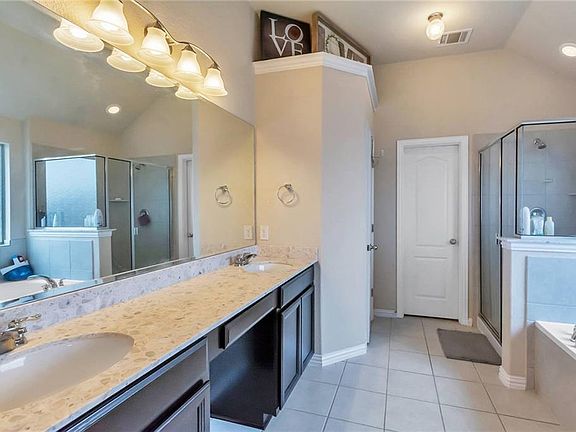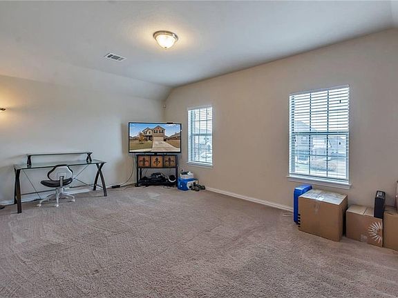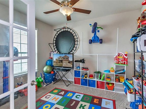 Beautiful 4 bed 2.5 bath in cul-de-sac, open floor plan concept, kitchen opens to dining and family room, kitchen features granite counters & stainless steel appliances, eat in kitchen island, spacious family room and dining area, front office/play room with glass french door entry, wrought iron spindles on stairs, enormous game/media room up, oversized master bedroom and closet, double vanity & separate tub/shower, covered back porch with extended wooden deck