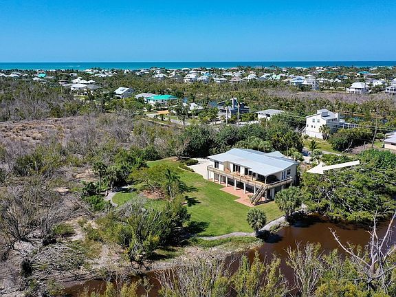 Peaceful, private, serene views of the Sanibel river and conservation land from almost every room. This originally built "1957" 3 bedroom, 2.5 bath, near beach home was completely renovated in 2003 - plumbing, electrical, wall structure, generator and hurricane standards, new roof 2021. This unique home sits on a .72 acre lot with a park like setting and offers an open floor plan boasting plenty of space and natural light throughout. Home has a metal roof, impact windows and hurricane shutters, expansive outdoor deck, great for entertaining friends, family and enjoying those spectacular Sanibel Sunsets. Spacious gourmet kitchen with a gas range, wall oven, granite counters, pantry and breakfast bar. The open concept living/dining room is surrounded by sliding doors that open to the huge wood deck overlooking the beautiful backyard that offers room for a pool. The living room has a custom built in entertainment center. The private primary suite offers custom built-in cabinets with a desk and the primary bathroom has a tiled vanity with double sinks and a walk in shower with etched glass. Enjoy this wonderful island location close to great restaurants "Rosalita's", "A Bit of Bailey's" Grocery, J.N. "Ding" Darling National Wildlife Refuge and Bailey-Matthew's National Shell Museum, all within biking or walking distance. Sanibel offers miles of bike trails, plenty of conservation walks and wildlife abound. Sanibel Island is a Bird Watcher's paradise and offers some of the World's best shelling. Furnishings negotiable. Seller Financing negotiable.