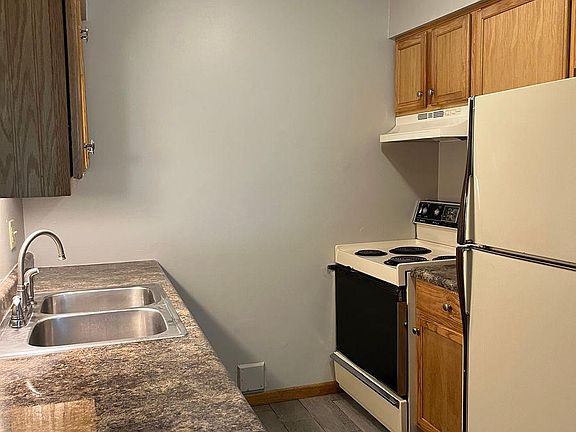 Newly remodeled 4 unit apartment complex. Newer kitchen cupboards and countertops with stove and fridge, oak stair case, new ceramic tile floors throughout apartment, new wall air conditioner, metal roof, siding and coin operated laundry room. This is a lower unit apartment. Owner pays trash, city water/sewer, grass cutting and snow plowing.