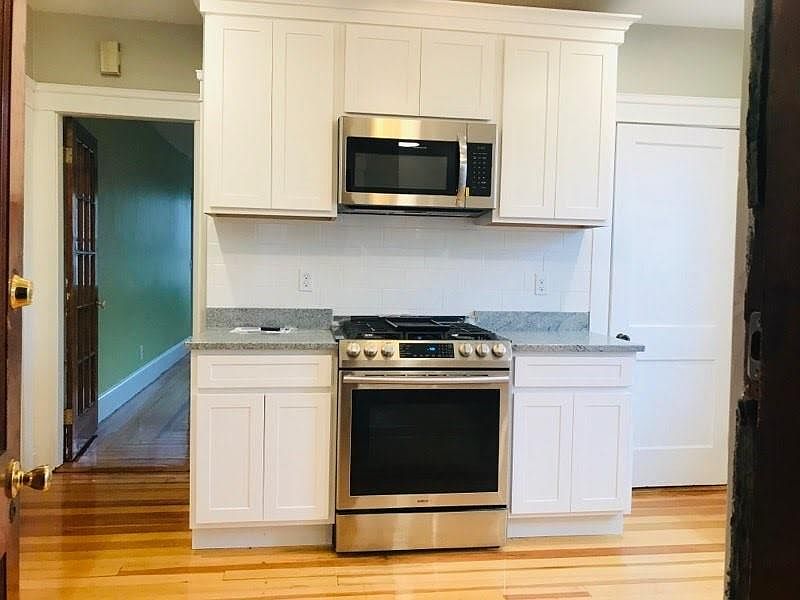 Stunning 2 bedroom unit located steps from Providence College on River Ave. Gleaming hardwoods, brand new kitchen, brand new bathroom, french doors, large bedrooms, large open living room, recessed lighting, garage parking, free laundry. This will not last!