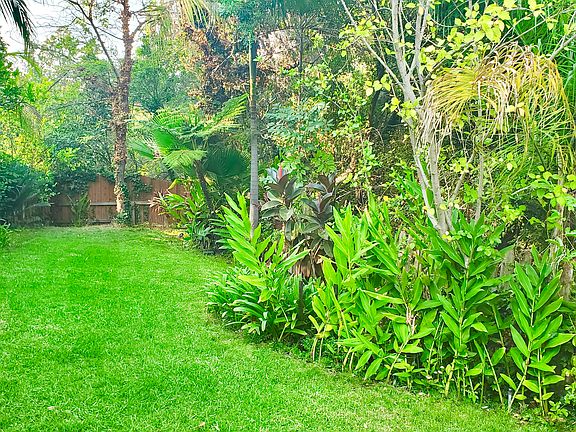 Very private mid-century modern home with a lush, tropical feel. 3 bed, 3 bath with a newer master bedroom suite with large walk in closet, high clerestory windows, and beautiful travertine bathroom. Mid-century classic by renowned architect A. Quincy Jones. Walls of windows, French doors, open floor plan, indoor/outdoor living. Gated/fenced property. Wooded backyard with grass front yard. Koi pond with babbling stream. On quiet cul-de-sac with minimal noise or traffic. Tumbled travertine, bamboo, and hardwood floors. Washer/dryer in laundry room. Large deck with view of Getty. A perfect retreat from the city but only minutes to Brentwood shopping and dining. Great and safe neighborhood, just up the street from vice-president's house. Walk to Kenter Canyon School and Crestwood Park. Available furnished and short-term at higher pricing. Month to month lease or annual lease. Dog ok with pet deposit (property is fenced). Tenant pays utilities.