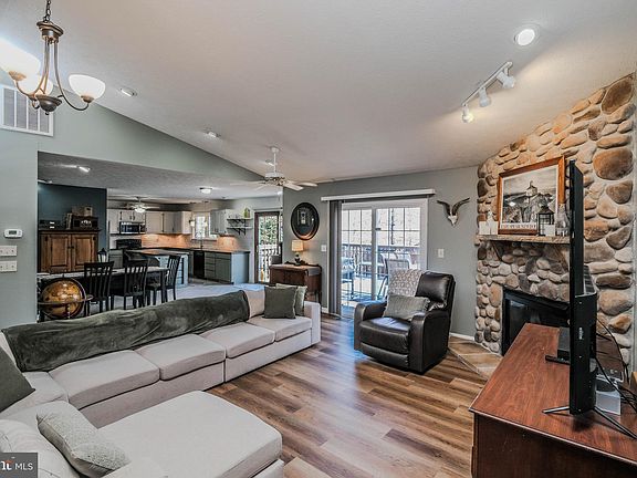 Here’s a HOT new listing to warm up these cold days (with $25k worth of updates the past 2 years)! One level living, vaulted floor plan, updates galore plus a dream location off paved level roads situated beautifully on a completely level fenced .65 acre corner lot one block from Shenandoah River views! Two car garage (with bonus storage room w/ double doors to side paved parking area), covered front porch, rear deck (accessed from sliding glass doors off great room & updated kitchen), corner gas fireplace, split bedroom floorplan, new flooring in all living areas and bedrooms (over $7k spent), ceramic in both bathrooms, fenced side and rear yard (w/ chicken coop that can convey or be removed), shed, owner’s suite with walk-in closet & oversized bathroom (w/ soaking whirlpool tub, double sinks, dual shower heads in shower), ceiling fans throughout and a plethora of UPDATES TO INCLUDE: Heat Pump 2017, Hot water heater 2022 and guttering, Kitchen updates include tile backsplash, $1,500 custom butcher block island w/ bar seating, new granite counters, above range microwave, stainless refrigerator, $5k in expanded fencing, and MORE! Located in Shenandoah Shores, a riverfront community with high-speed internet available, a public water system, river access (complete with picnic area) and a convenient local mini- mart.