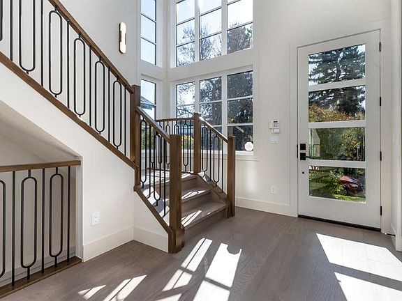 Bold exterior designOpen-concept livingWide-plank hardwood floorsExpansive windowsNatural lightModern eleganceDesigner gas fireplace