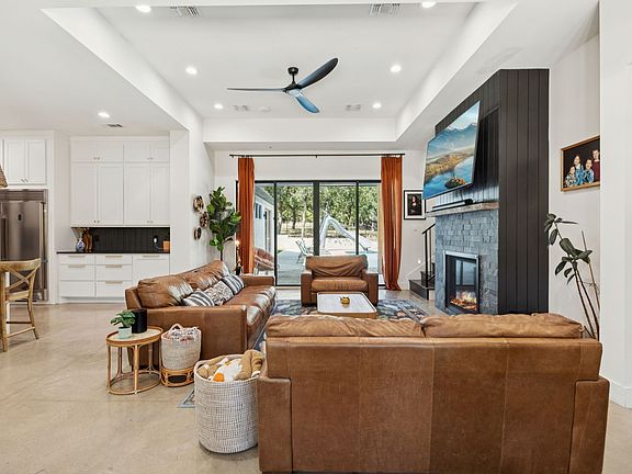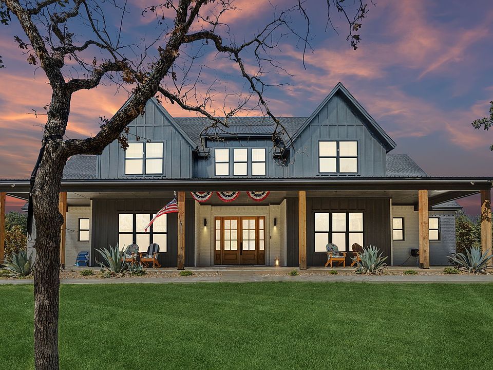 Experience refined country living in this exceptional modern farmhouse set within the peaceful, gated golf course community of Sugartree on the Brazos. Built in 2022, this impressive residence combines timeless design, thoughtful functionality, and luxurious comfort across 3,335 square feet of living space. Step inside to find soaring ceilings, wide-open views, and abundant natural light streaming through large windows that frame the surrounding trees and wildlife. The gourmet kitchen serves as the heart of the home, appointed with granite countertops, stainless steel appliances, a walk-in pantry, and a spacious butler’s pantry for added storage and prep space. The expansive island offers generous room for cooking, serving, or gathering with friends, blending seamlessly with the dining and living areas in an open, inviting layout. Sliding doors lead to the large covered back porch—an effortless extension of the indoor living area—overlooking a tranquil backyard oasis. Here you’ll find a deep pool, easy-maintenance turf, and a dedicated dog run, all surrounded by mature trees that enhance privacy and natural shade. Two private primary suites on the main floor offer versatility and comfort, each designed for relaxation. Upstairs, four additional bedrooms and a large second living area provide flexible space for entertainment, study, or recreation. Laundry rooms conveniently located on both levels add practical ease to daily life. A charming front porch welcomes you home, while the three-car garage offers generous parking and storage. Every element of this property has been carefully curated to create a lifestyle of balance—where modern design meets rustic serenity. From peaceful mornings watching deer roam to evenings by the pool, this home invites you to experience the best of country luxury in one unforgettable setting. Bundled service pricing available for buyers. Connect with the listing agent for details.