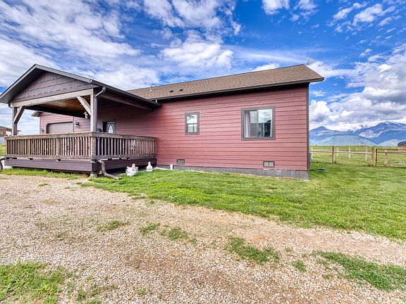 Spectacular Views of the Bitterroot and Sapphire Mountain Range, only minutes from the town of Stevensville. Built in 2018, this custom built 1496 sq. ft. single level home focused around a very open spacious living room, dining and kitchen with vaulted ceilings. Hickory cabinetry throughout, marble tile countertops, large island/breakfast bar overlooking the living room and dining. Master bedroom also features vaulted ceilings with a spacious master bath that includes custom marble tile shower. Two additional guest bedrooms, guest bath, laundry room, entry closet and an oversized two bay attached garage, all sitting on 2.5 acres. You will enjoy the large covered deck for your morning coffee and barbequing the evening away with great meals with family and friends.