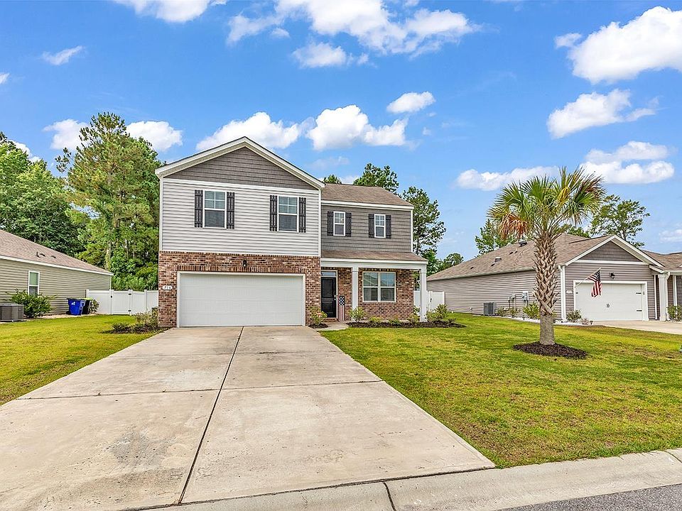 Located in the desirable St James School District! This 4 bedroom, 2-1/2 bathroom home has a huge fenced-in back yard and a spacious floor plan. The open floor plan connects the kitchen, dining, and living areas making it perfect for entertaining. Features include granite countertops in the kitchen, stainless steel appliances, white cabinets, 9 ft ceilings, shiplap wall feature in the living room, and luxury vinyl floor planks in all areas except the bedrooms. Harmony @ St James is conveniently located within walking distance of the High School, close to shopping, dining, golf, and all the beach has to offer. Amenities include an open air pavilion and fire pit for gatherings. Additional storage solutions inside the home include upper cabinets over the washer/dryer, and heavy-duty shelving in the garage. Low HOA fees include access to a community area with trash pickup and recycling.