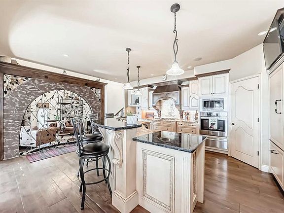 Travertine and hardwood flooringGourmet kitchenCustom cabinetryGranite countertopsUpgraded stainless steel appliancesPicturesque viewsBeautifully landscaped yard