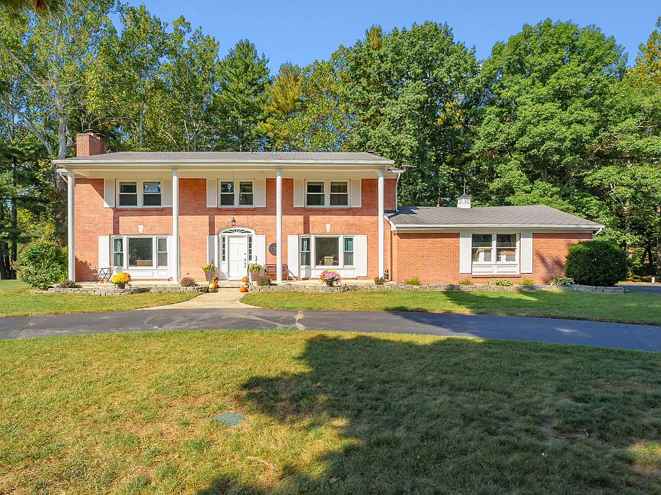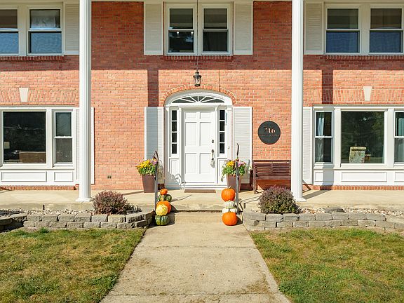 This elegant all-brick Colonial style home offers timeless style w/over 3,300 finished SF. Inside, the formal Living Room and Dining Room feature rich bamboo wood flooring, w/a cozy gas fireplace in the LR. The completely updated kitchen showcases new cabinets, quartz countertops, glass tile backsplash, a large pantry, island seating and top-of-the-line appliances.. including a 5 burner gas stove, double oven and wine fridge. Next to the kitchen is the informal eating area with sliders to a large deck where you can enjoy views of the impressive back yard framed by mature trees and the scenic Gun River. The inviting family room with solid oak floors and lovely brick wood burning fireplace rounds out the main floor. The elegant winding staircase leads to 4 oversized bedrooms , all with stunning hickory wood flooring. The primary suite is a true retreat featuring dual closets, double sinks, tile flooring and walk in shower. Come take a tour, and envision yourself in this beauty Sidenote from sellers... Although the property is in the FEMA flood plain, the sellers state the home has not flooded since they have owned it (purchased n 2012). The previous owners installed the berm in the backyard, and installed (3) sump pumps to insure no flooding in the future. The owners are required to have flood insurance on their home, currently at an addl $750/year