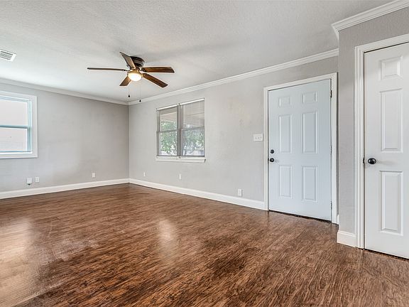 Fresh paintWood lam flooringFantastic office areaTwo spacious bedroomsCrown moldingStorm shelter in backyardWalk in closets