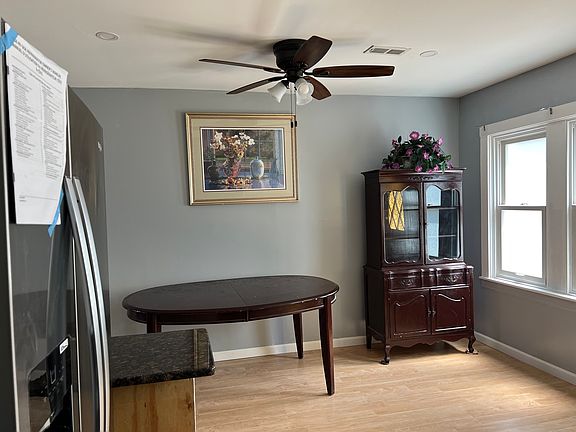 Three bedroom house, but have five bedrooms right now. First floor front have one room can put twin size beds, basement have one room can put full size, second floor have three bedroom. The five bedrooms have new hardwood floor, have AC too. the kitchen microwave, range oven, and refrigerator just new, clean and painted whole house. Basement door have two door, one door can walk to yard. Backyard face to street, trash pickup at backyard. Nice and convenient location, walk to supermarket and school, bus station,and subway, easy find parking. Closely high way 76 or 95. Just have new cement yard and parking lot at yard