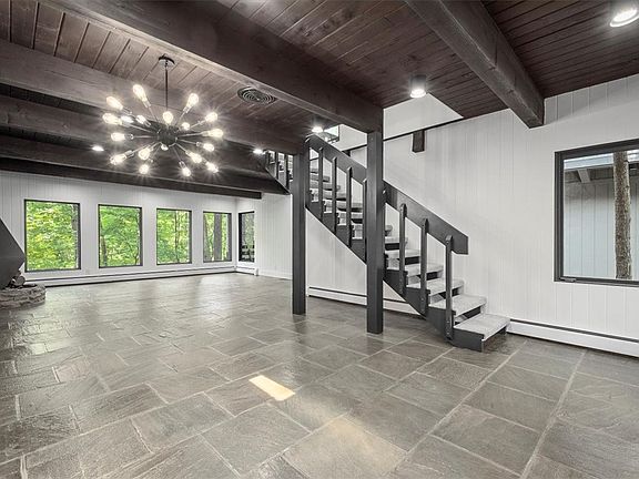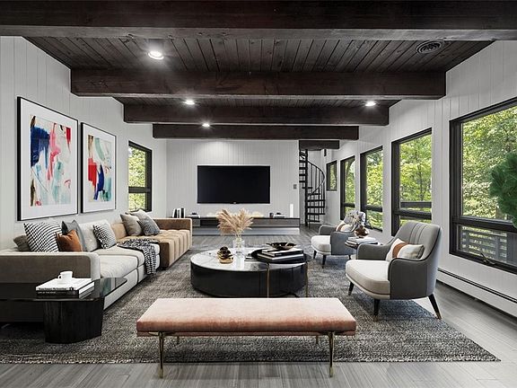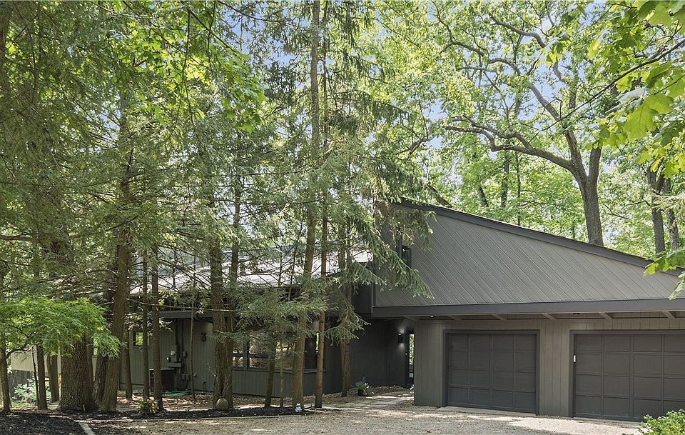 Recently renovated mid century modern home inspired by Frank Lloyd Wright's designs situated on a treed over one acre lot in beautiful Bradford woods. As you enter the 2sty foyer, you find walls of glass gracing the back of the home which provides the living areas with and abundance of natural light. A 27 foot wall of hand cut stone enhances the living and dining room areas which are also accented by tongue and groove cedar beamed ceilings. The Italian Lacquer Lube kitchen features a double subzero fridge/freezer, Viking ovens and Spanish porcelain tile with stainless steel inserts. New decking and rails installed on the numerous decks that span the back of the home overlooking a private rear yard. The enormous master suite is unique with it's spiral staircase, walls of windows, gorgeous new bath and unbelievable storage. Finished lower level, additional room on first floor for office or bedroom. So many features must see to appreciate. Close to all major roads, shops and dining