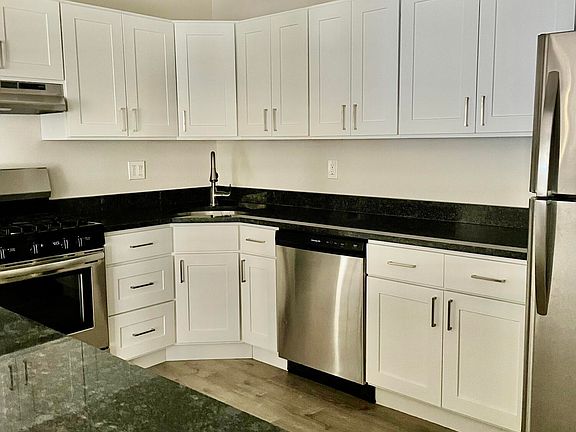 New toiletsLarge walk-in closetsStainless steel appliancesWhite shaker cabinetsLaminate floorsGranite counters