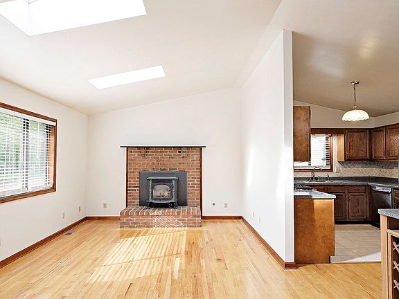 Step into this 2,385 sqft home, where a vaulted ceiling with skylights and red oak flooring create an inviting atmosphere. The open living room with a cozy gas stove flows into the eat-in kitchen with stainless steel appliances. A recent addition features a new living/dining room with a gas fireplace and sliding glass doors out to the deck.