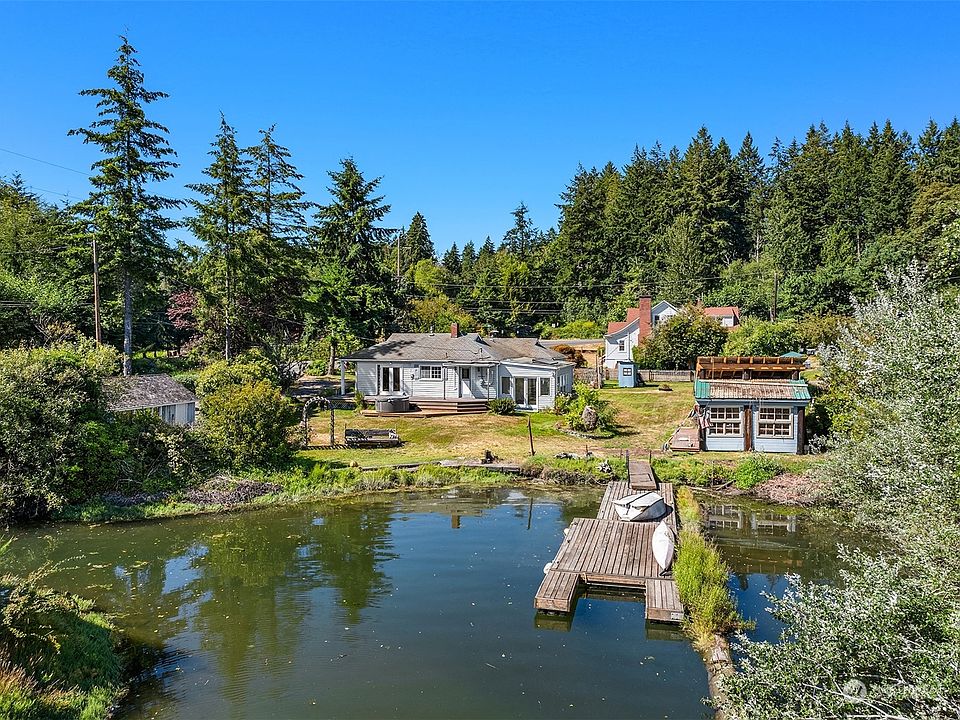 Welcome to this sweet cottage at the head of Eagle Harbor Bay. A magical outlook into the ever-shifting low & high tides! Where Great Blue Herons frequent to fish. A floating dock is ideal for launching a kayak or rowboat. Built in 1946, this 2-bedroom, 1-bath house is 1,396 sq ft. An addition on the back of the house can be used as a bedroom or a fabulous art studio with natural light. The large south-facing deck has spectacular views down the Bay. There is a detached toolshed/garage, a storage shed, & an artistic lean-to with a metal roof. New 2-bedrm septic installed. Public water connection installed. City of BI is adding a bike lane on Eagle Harbor Dr & updating the salmon stream culvert, construction in process thru 10/5/25.