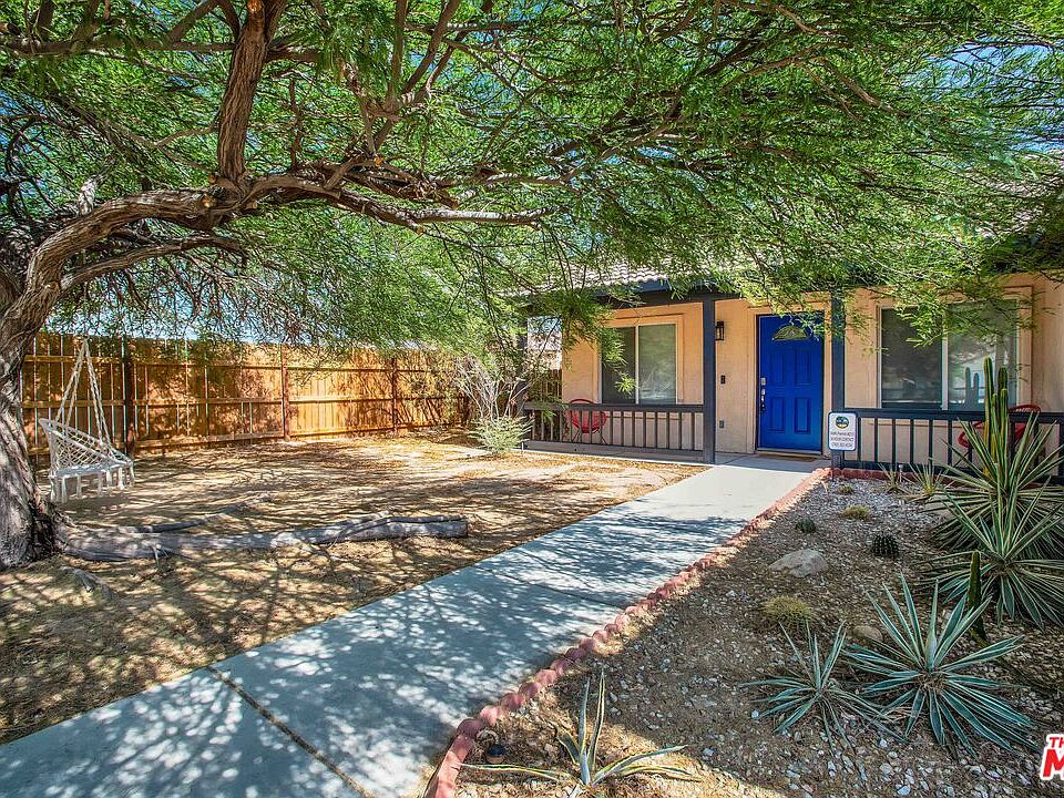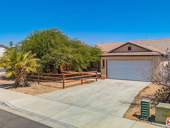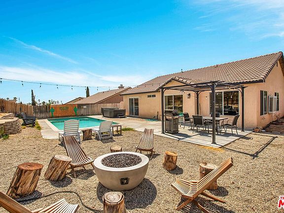 Welcome to your dream desert retreat! This fully furnished 5-bedroom, 2-bathroom pool home is a rare gem in one of 29 Palms' most sought-after neighborhoods. From the moment you arrive, you'll notice the charming curb appeal with mature landscaping, tile roof, and wood privacy fencing. Step inside to find a bright, airy living room with large dual-pane windows that flood the space with natural light. The open-concept kitchen and dining area is perfect for entertaining, featuring newer stainless steel appliances for even the most discerning home chef. The primary suite feels like a vacation, with private access to the stunning backyard, while the primary bath includes dual vanities and chic mirrors, creating a spa-like atmosphere. Each of the guest rooms is uniquely styled, offering a cozy and inviting vibe. Now, the backyard? It's the ultimate oasis! Imagine yourself lounging by the pool and spa, hosting BBQs in the lighted outdoor dining area, or cozying up by the fire pit under the stars. And if that's not enough, the finished 2-car garage currently set up as a game room offers endless possibilities, from a home gym to an art studio. With upgraded fixtures, ice cold AC, indoor laundry (washer & dryer included!), and so much more, this home is a must-see. Don't miss your chance - schedule a tour today before it's gone!