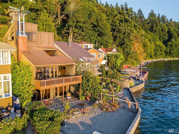 Welcome to the Beach! Rare home w 39 ft of waterfront. 4 levels captivate the Sound on every floor including a crows nest. Relax on your deck & enjoy stunning sunsets, sweeping views of Olympics & Islands. See the eagles soar, whales blowing, seal lions frolicking. Gaze @ vessels of barges & ferries. Step off your front porch to explore the beach & sea life. 2nd kitchen down provides endless possibilities. Nestled on a quaint dead-end rd. Zoned SF5000- lot is 12,894, possibilities,Buyer 2 verify