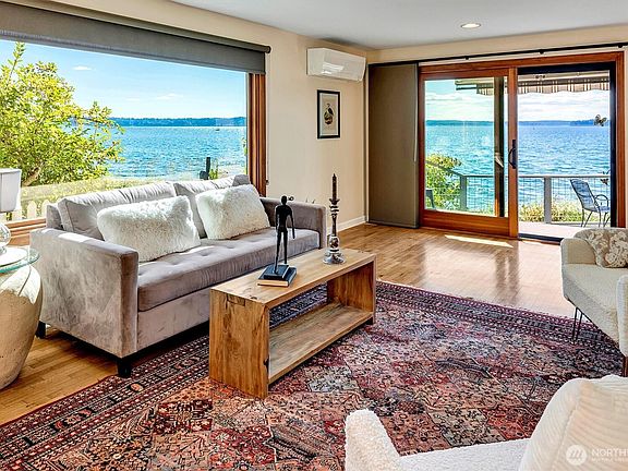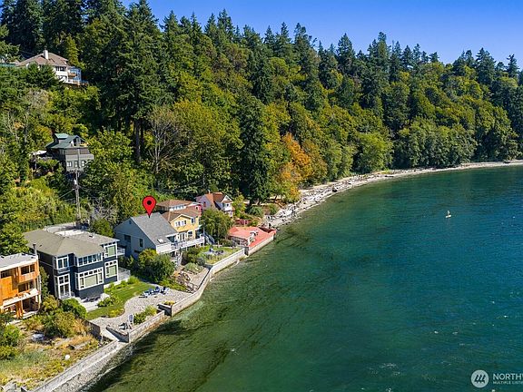Just 3 houses from Lincoln Park's sandy beach, saltwater pool, path to Vashon Ferry, trails & sports fields. Head north for over 7 miles of flat terrain to the WS Bridge. Original owner grew up down the street & built about three feet up from level building site. 180' view of Puget Sound, Olympic Mts, colorful sunsets & endless maritime life & activity. Hardwood floors repurposed from the Olympic Hotel Ballroom. Beautiful wood wrapped windows bring the Sound into your home. Open the slider & listen to the waves. Nice living rm, dining rm, kitchen, 1 bedrm & 3/4 bath-laundry rm & deck on main. Upstairs 3 beds, 5 piece bath, & view deck off Primary. Be part of the WS Community w/great restaurants, beaches, shops & minutes to Downtown Seattle