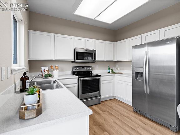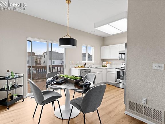 Welcome to this stunning home located in the Stetson Hills neighborhood! This property offers the perfect combination of modern updates and an unbeatable location. Freshly painted and boasting brand-new flooring throughout, this home truly shines and is ready for you to move in. It has a nice size yard that is fully fenced, backs to a green belt to give space from the neighbors, has a walk-out basement and a view of Pikes Peak out the front. Located close to schools, Peterson Air Force Base, expansive parks, and the Rocky Mountain Vibes Stadium, there’s something for everyone nearby. Enjoy evenings at the local movie theaters or tee off at the Cherokee Ridge Golf Course just minutes away. With a wide variety of restaurants and countless other amenities within easy reach, you’ll love the convenience of living here. Whether you’re a first-time buyer, or looking for a fresh start in a vibrant community, this home is a must-see!