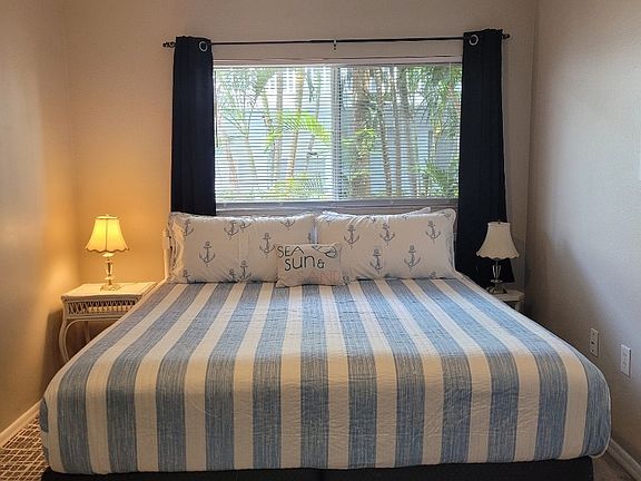 Super cute condo directly across from the beach . Super clean and close to everything in walking distance Watch the rockets go off from the beach! Quiet condo and great neighbors The rental price is with everything included except electric . We have a smart tv in living and bedroom There is one parking spot that belongs to the unit .