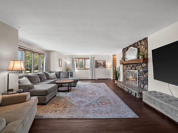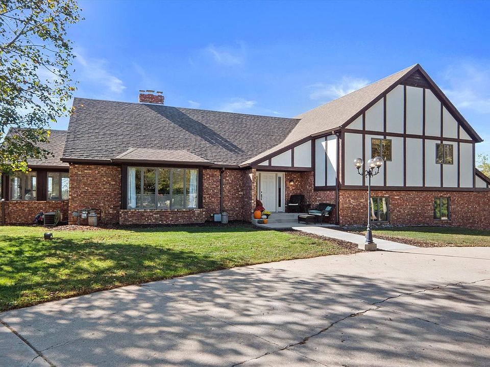 Experience luxury living on this stunning 10-acre estate with unmatched views. This private oasis offers 4 spacious bedrooms, 3.5 baths, and a fully finished basement. The main floor boasts a chef's kitchen with a large island, formal dining, office/5th bedroom, and an indoor hot tub/sauna room. A main-level in-law suite features a private entrance, kitchenette, fireplace, and full bath. The dream-worthy master suite includes a fireplace, shiplap wall, spa-like bath, and 4-season addition with private balcony. Lower level is ideal for entertaining, a playroom, or mancave. Free to have farm animals on property. Huge outbuilding for all your toys. Ride ATVs, hike wooded trails, or relax surrounded by nature. Conveniently located near the freeway! Full feature list in MLS! Too much too list!