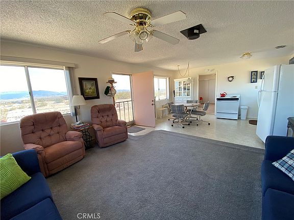 Great cabin home with an exceptional view on five acres. Located not far from paved Morongo Road this hilltop setting has a great deal to offer. You must be onsite to fully appreciate the charm and location. The sale can include the all the existing furnishing as a turnkey residence. Excellent vacation rental opportunity. This home has city water from the 29 Palms Water District, electric power from Southern California Edison, this desert acreage location is zoned Rural Living RL-5. Recent new roof. Brinks Security system. Pellet Stove for heat. Separate outbuilding with a breezeway is wired for use as a shop and includes an air compressor. The outbuilding would make a perfect studio. Endless options for creative new uses. The property is just a short drive to the Marine Corps Base, downtown Twentynine Palms, the Joshua Tree National Park, and all the popular local tourist destinations, yet it is a private setting with unlimited vistas.