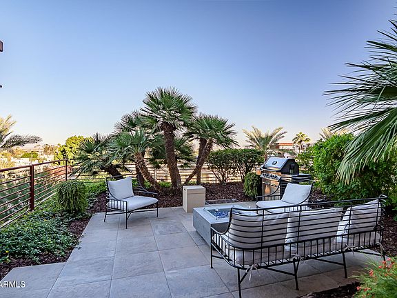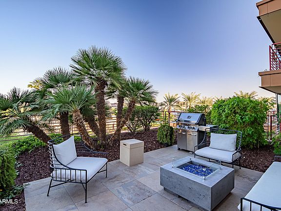 Welcome to this absolute showstopper at Optima Camelview. This gorgeous 2 bedroom + den, 2 bath split floor plan unit has been spectacularly remodeled through-out. Be ready to be blown away by one of the largest patios in the entire community. This jaw dropping remodeled patio has a very rare piped in gas line, boasting both an outdoor fire pit & bbq grill. The perfect space for relaxing or entertaining while enjoying the most amazing sunsets and sunrises. This unit features the very desirable and rare to find eastern view which showcases lush city and McDowell mountain views. You will find luxury finishes through-out this entire property along with 2 garage secured private parking spaces (2nd parking spaces are worth ~$40,000 and can be re-sold). Simply a must see in person property! All found within the luxurious Optima Camelview Village, with it's unbeatable location & state of the art architecture/amenities. Amenities include: Two Outdoor Zen Pools, Spas & Bbqs