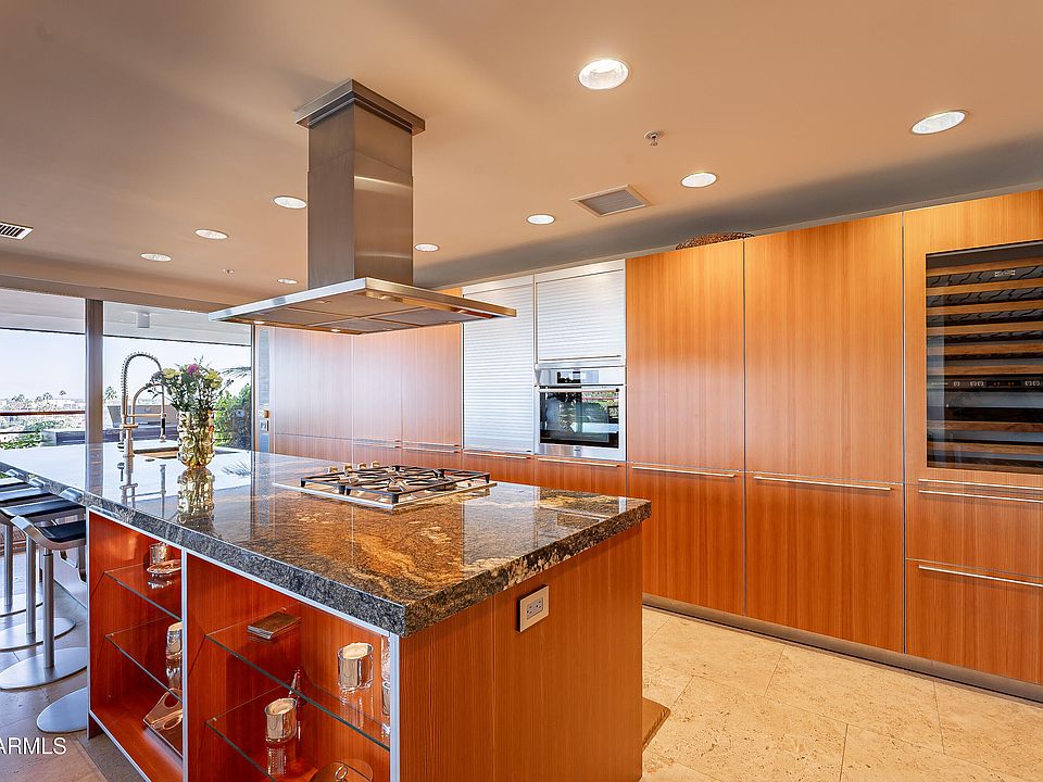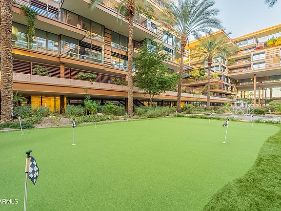 Fully furnished, penthouse condo, located in the highly coveted Optima Camelview Village! 3 bed, 3.5 bath plus an office. The views alone are some of the best around with panoramic views of the McDowell Mountains. Contemporary upgraded features thought the entire home. The wrap-around terrace is the signature piece of this home with lush, desert landscaping and plenty of covered patio space to enjoy the gorgeous Arizona weather. A two-way fireplace separates the great room area from the kitchen & dining areas. A chef's kitchen built for entertaining features an island with eat-up bar seating, gas cooktop with oven, matching overlays on the cabinetry with lots of storage space, and a wine fridge. A split primary bedroom with its own private terrace. The primary bath has dual vanities, soaking tub with jets, oversized seamless shower. Large walk-in closet with built-ins. Additional guest bedrooms both have full en-suite baths. A private office, powder room and full laundry area round out the magnificent rooms in this home. Two reserved parking spaces in gated, secure parking garage are included. An endless supply of community amenities including a 24,000 SF health club, heated pools & spas (indoor and outdoor), enclosed dog walking track, onsite concierge, business center, racquetball and basketball courts, putting green, and beautiful, lush, landscaped grounds. Located within walking distance to Camelback Fashion Square or Old Town Scottsdale for an abundance of shopping and eating places. All you have to do is bring your clothes and toothbrush - the rest is provided for you!