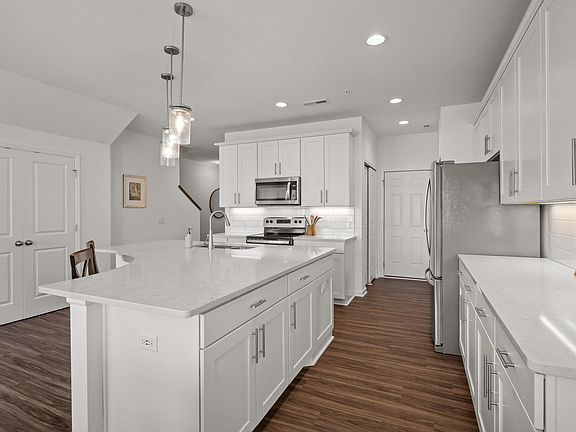 This beautiful like-new townhome is located in high demand Maple Grove. The main level has an open floor plan with high ceilings, loads of natural light and beautiful LVT flooring. The gourmet kitchen features 42” white cabinets, stainless steel appliances, stylish tile backsplash, and an oversize island with quartz countertops. The upper level features 3 bedrooms, two bathrooms, laundry, and a loft area. The primary bedroom has a gorgeous feature wall, sitting area, and huge walk-in closet, as well as an ensuite bathroom. Enjoy all that Maple Grove has to offer while living in this fantastic townhome!
