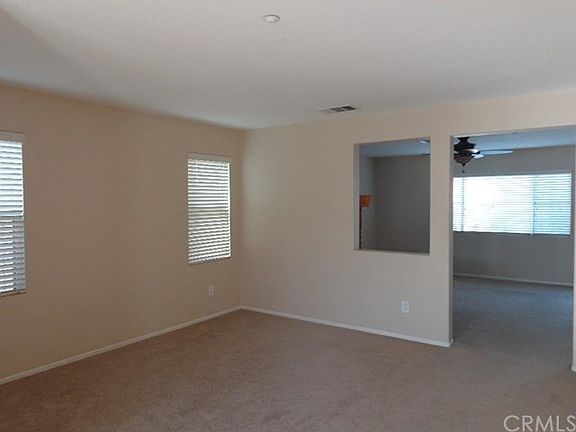 This move-in ready property is in a highly-desirable area of Fontana. Enter the property to formal living/dining area and convenient 1/2 bath. There is a fireplace and ceiling fan in the den which is open to the kitchen with breakfast bar, eating area and lots of storage. Once upstairs there are three bedrooms with a large landing that has space for a desk and cabinet. The laundry room is also upstairs with plenty of storage. The master bedroom has vaulted ceilings and lots of natural light, attached bath has double vanities and a spacious walk-in closet with shelving. The hall bathroom has extra storage and also has direct access to one of the bedrooms. The whole home has 2-inch blinds. The 2-car garage is completely dry walled and has direct access to the dog run and kitchen. Beautifully done back yard with stamped concrete, block walls on all three sides, and both front and back yards have sprinklers with timers. Come see this well-maintained family home!