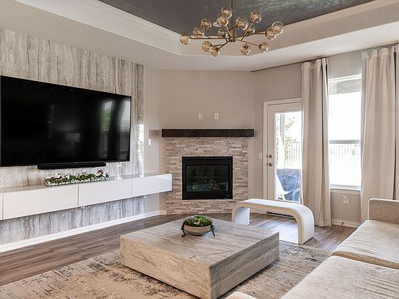 Cozy fireplaceGreen belt backyardPrivacy for outdoor relaxationQuartz countertopsSmart homeElegant tray ceilingsBuilt-in ovens