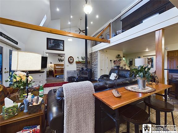 Discover the charm of modern living in this Cape Cod home, ideally situated in the Town of Olean within the esteemed Portville School District. This residence features an expansive loft area, adaptable as one or two bedrooms, alongside a convenient first-floor primary suite adjacent to the main living space. The home is a storage dream with two walk-in pantries and boasts a uniquely secluded location and unparalleled backyard views that promise daily serenity.